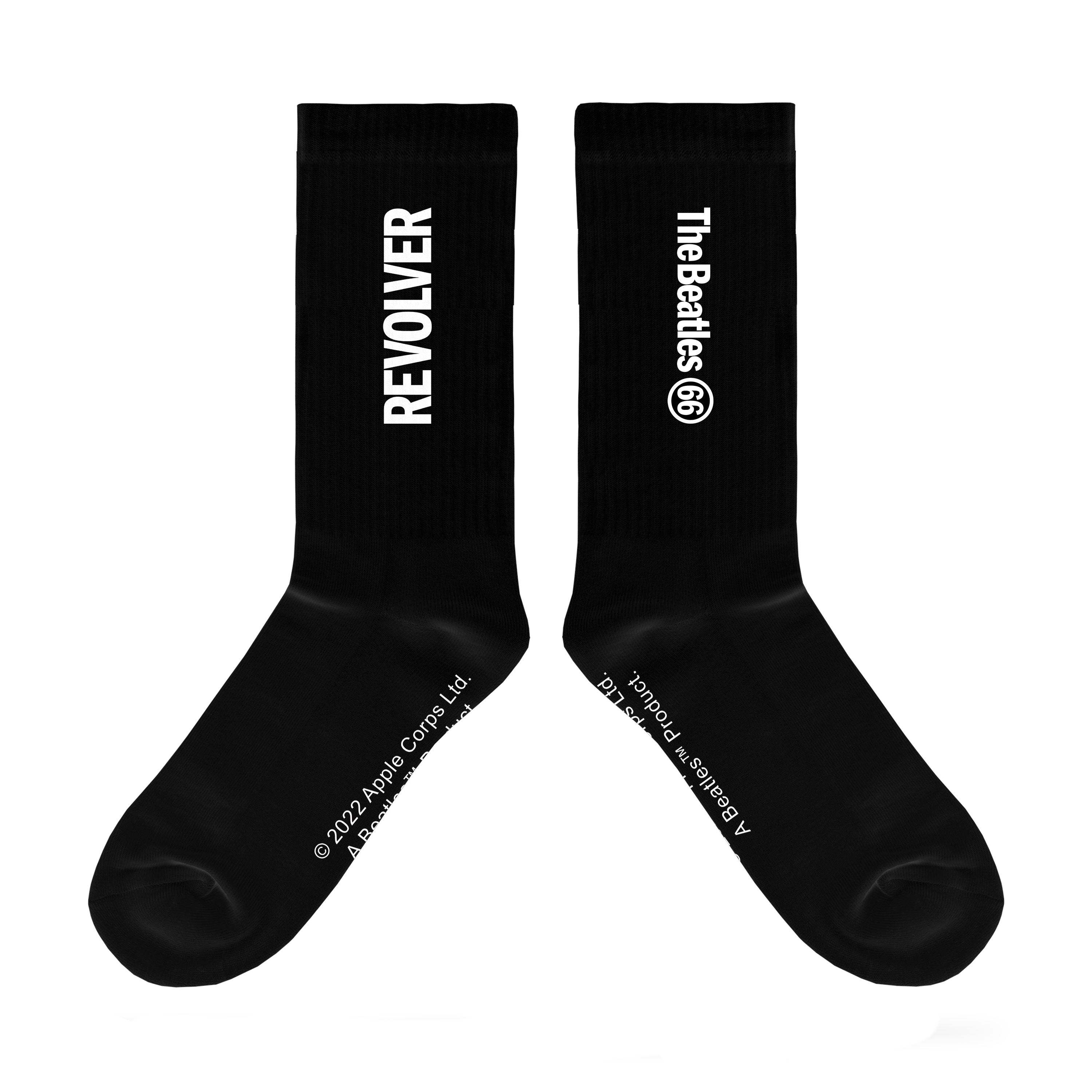 Schwarze The Beatles Revolver Socken. Spezial Edition für den deutschen Markt mit schickem weißem Printmuster.