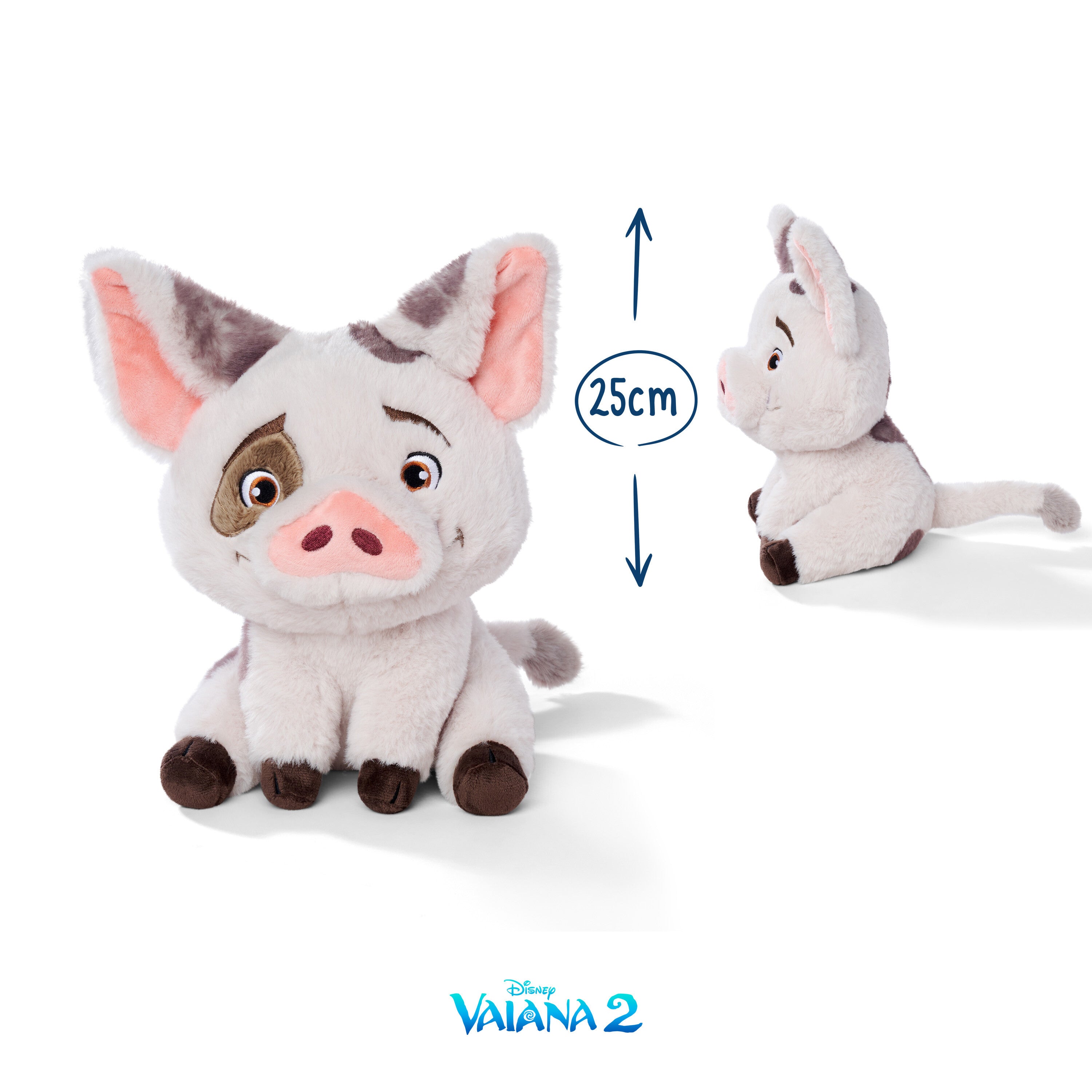 Von den entzückenden rosa Öhrchen und dem unschuldigen Blick bis zu den dunklen Tupfern auf dem Plüsch: Das offiziell lizenzierte Vaiana Kuscheltier begeistert mit seiner detailgetreuen Umsetzung und sorgfältigen Verarbeitung. Jedes Detail des Zeichentrick-Charakters wurde bei der Plüschfigur liebevoll umgesetzt, um Puas verspielten Charme abzubilden. Ob beim Kuscheln, bei einer langen Autofahrt oder beim Nachspielen der Film-Abenteuer: Auch als Stofftier-Variante stellt sich das mutige Schwein Pua allen Herausforderungen.
